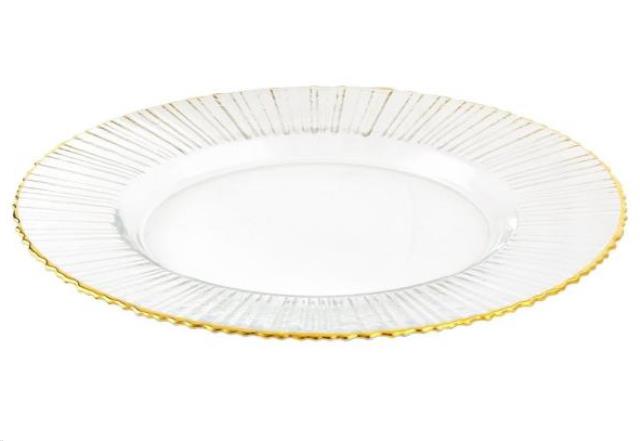 CHARGER GLASS RAY/ GOLD TRIM 13"